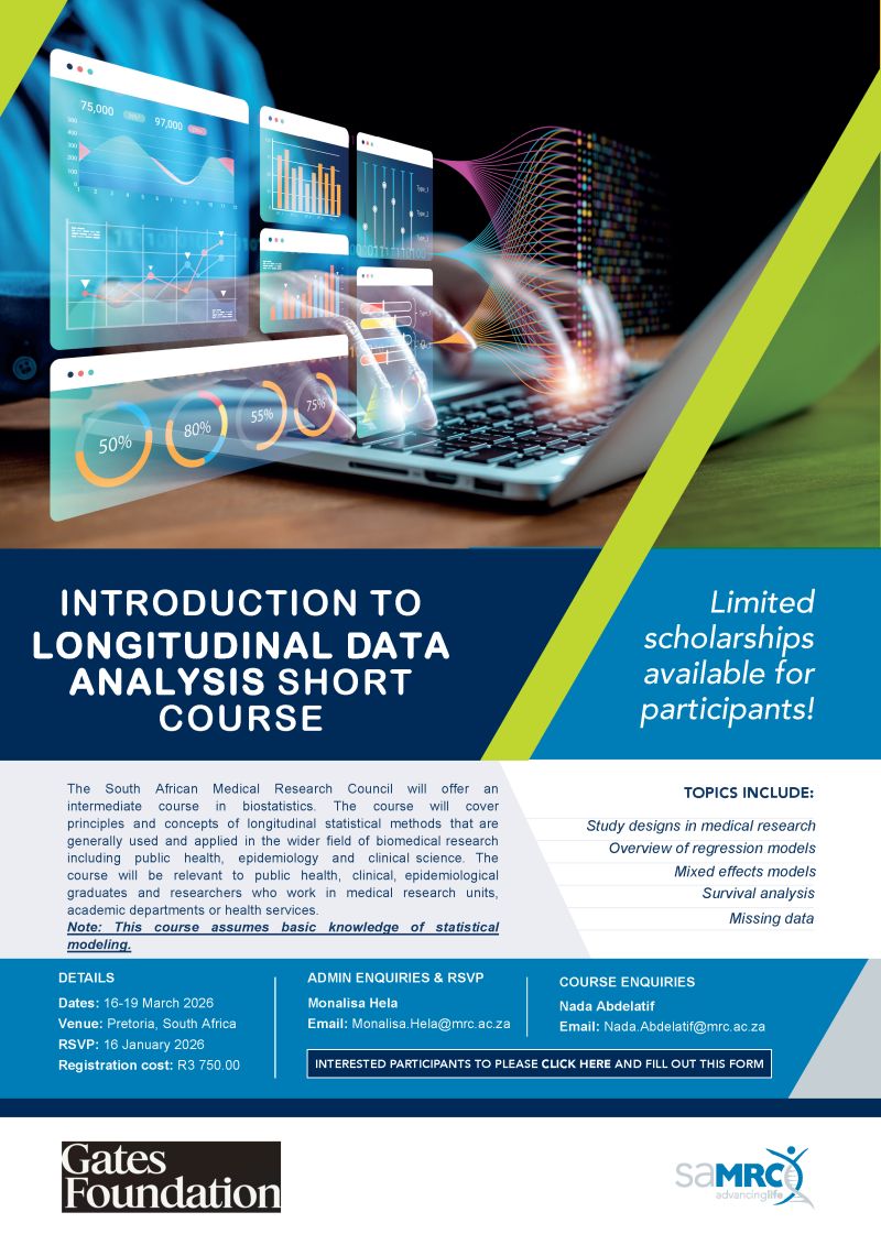 Register here:https://www.samrc.ac.za/event/introduction-longitudinal-data-analysis-short-course